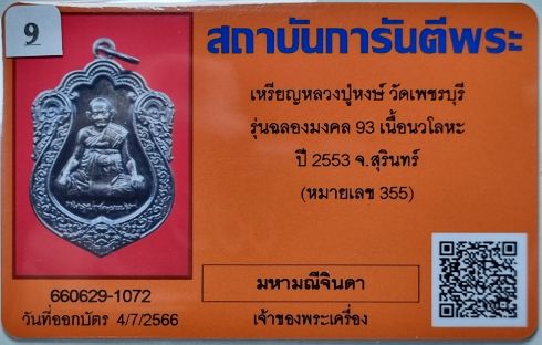 เหรียญเสมา รุ่น ฉลองมงคล 93 หลวงปู่หงษ์ พรหมปัญโญ สุสานทุ่งมน เนื้อนวะ หมายเลข 355 สวยแชมป์ กล่องเดิม พร้อมบัตรรับรองครับ