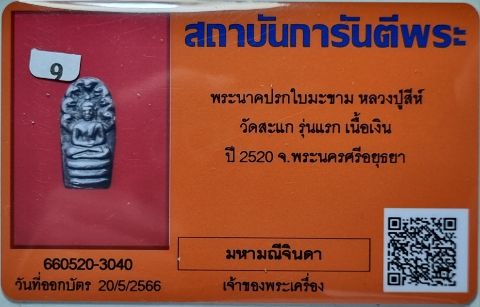 พระนาคปรกใบมะขาม หลวงปู่สีห์ วัดสะแก รุ่นแรก ปี 2520 เนื้อเงิน สภาพสวยเดิมหา ยากมากครับ พร้อมบัตรรับรอง