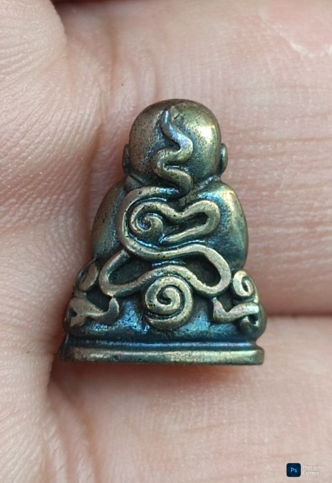 พระปิดตาเนื้อเมฆสิทธิ์ หลวงพ่อดี วัดพระรูป จ.สุพรรณบุรี รุ่นแรกปี 2532 พิมพ์ฐานเขียงหลังยันต์ยุ่ง (พิมพ์เล็ก) สวยเดิมพร้อมกล่องครับ