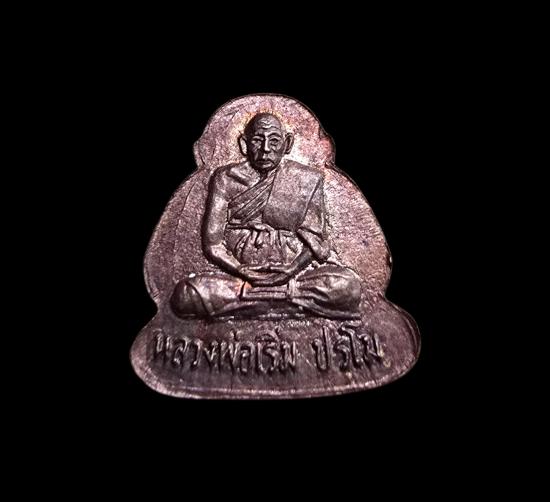 พระปิดตาหลังรูปเหมือน หลวงพ่อเริ่ม ปรโม วัดจุกกะเฌอ รุ่นจันทร์เพ็ญ ปี38 เนื้อทองแดง