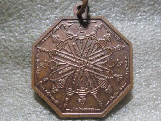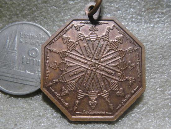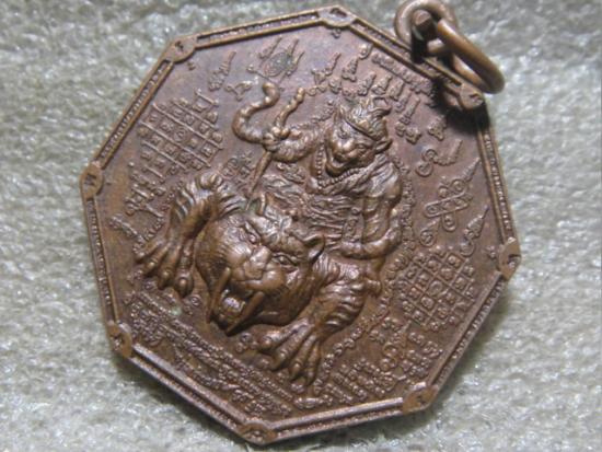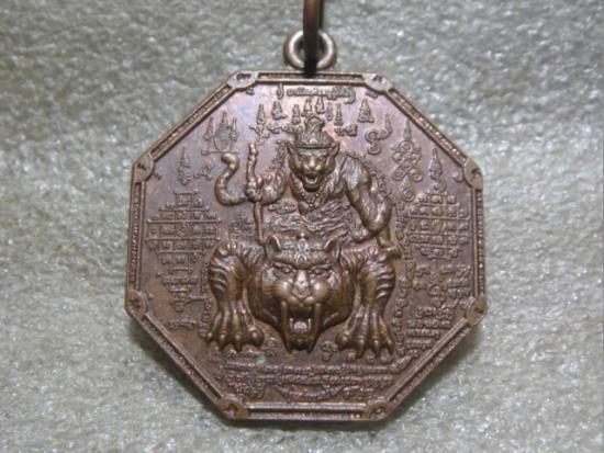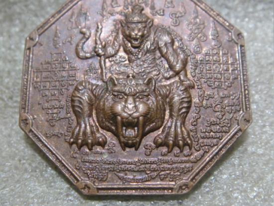 วัดใจเคาะเดียว.......100.......เหรียญแปดเหลี่ยม ฤาษีสมิงพรายนั่งเสือ รุ่นปราบมาร หลังยันต์แปดทิศ ไม่ทราบที่