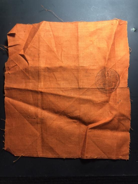 ผ้ายันต์มงกุฏพระเจ้า ปั้มตรายาง หลวงพ่อวิเชียร วัดเนินสุทธาวาส ชลบุรี หมายเลข 9904