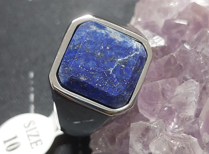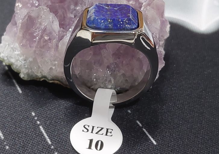 แหวนหัวลาพิสลาซูลี ตัวเรือนแหวนเป็นสแตนเลสขัดเงาแข็งแรงทนทาน ขนาดแหวนเบอร์10