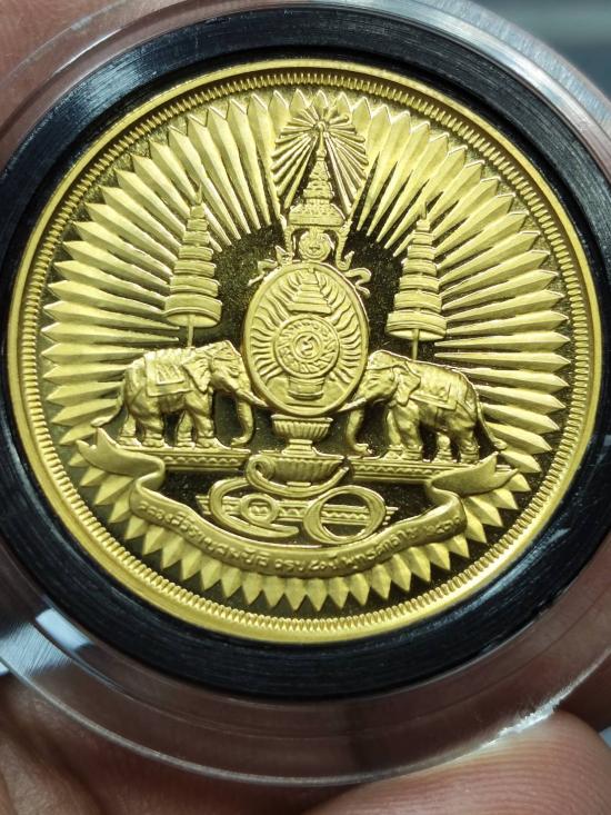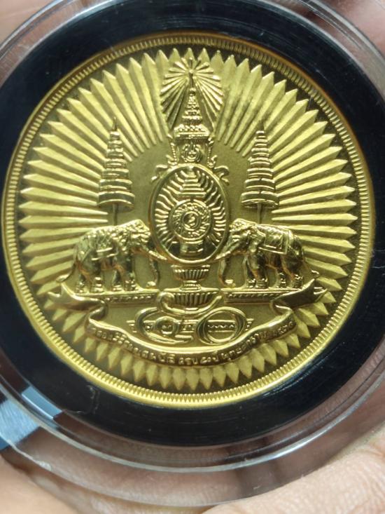 เหรียญตราสะญลักษณ์ กาญจนาภิเษกสองหน้า เนื้อทองชุบ พ.ศ.2539 ขนาด 3 ซ.ม. สภาพสวยครับ