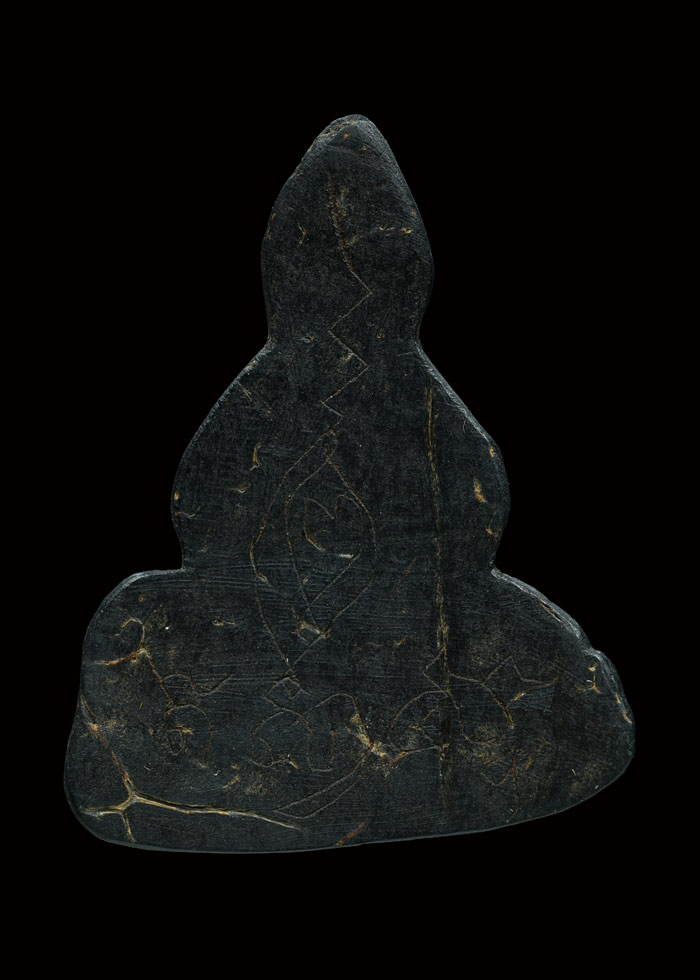 กะลาแกะ พระราหูอมจันทร์ หลังจาร ไม่ทราบที่ครับ