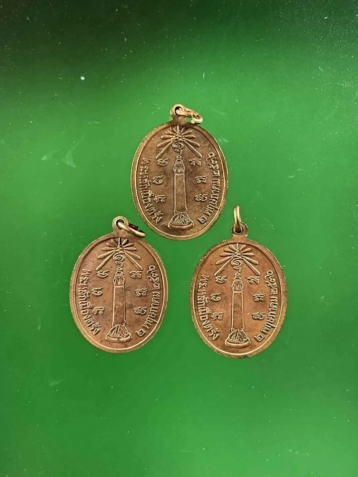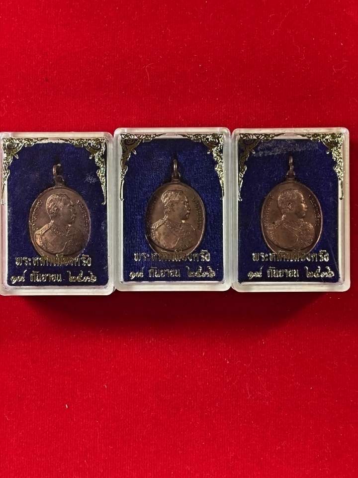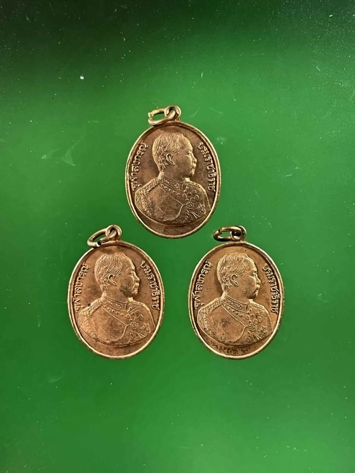 3 องค์ เหรียญ ร.5 หลัง พระหลักเมืองตรัง จ.ตรัง เนื้อทองแดง ปี2536 กล่องเดิมแท้