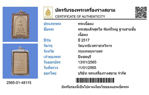 สมเด็จสุคโต ปี2517 วัดบวรฯ กทม เลี่ยมเงินลงยาสั่งทำ สวยๆ พร้อมบัตรรับรอง