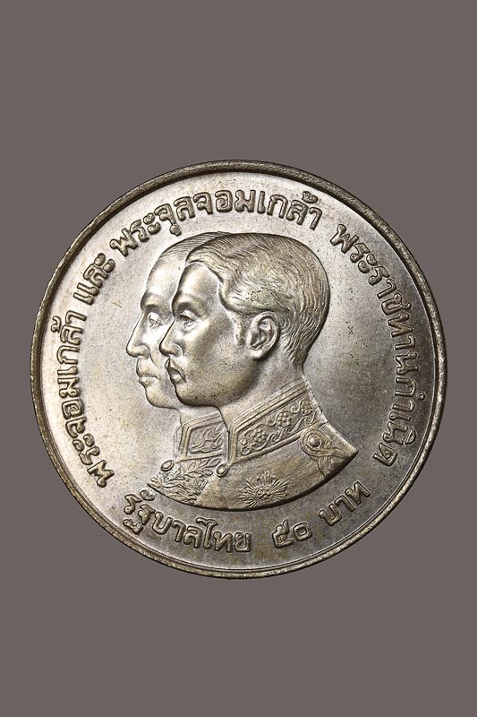 เหรียญกษาปณ์ที่ระลึก ในหลวง ร.4 - ร.5 "100 ปี พิพิธภัณฑสถานแห่งชาติ" ปี 2517 เนื้อเงิน (หนัก 25 กรัม)