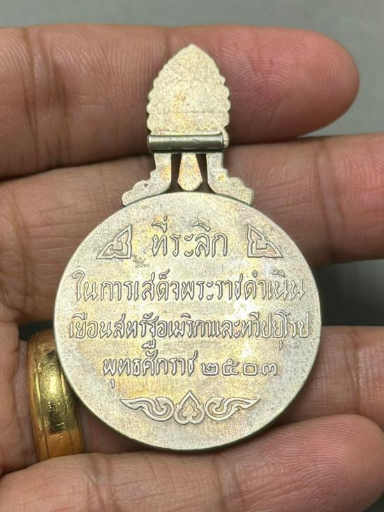 เหรียญในหลวงรัชกาลที่ 9 ที่ระลึกเสด็จเยือนอเมริกาและทวีปยุโรป ปี 2503 นิยม"ขอบดิส" เนื้อเงิน พิมพ์ใหญ่ ครับ