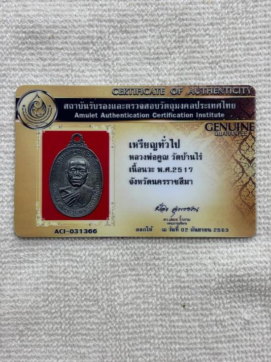เหรียญหลวงพ่อคูณ วัดบ้านไร่ ปี17 "เนื้อนวโลหะ" พร้อมบัตรรับรองจาก อาจารย์ป๋อง สุพรรณ ครับ พระเจ้าของเดิมเก็บรักษาไม่ดี สภาพผ่านการใช้ ผิวไม่เดิม แต่พุทธคุณเต็ทชมเปี่ยมเช่นเดิมๆครับ