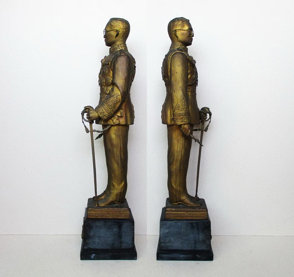 พระบรมรุปในหลวง รัชกาลที่ 9 อริยบทประทับยืนบนฐานหินอ่อน