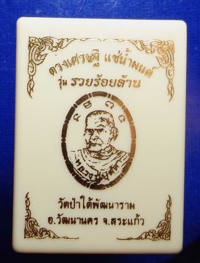 พระเนื้อผงดวงเศรษฐี แช่น้ำมนต์ หลวงปู่บุดดา ปัญญาธโร วัดป่าใต้พัฒนาราม รุ่น รวยร้อยล้าน ตระกรุด 2 ดอก หมายเลข 366 เดิม ๆ พร้อมกล่องเดิม จ.สระแก้ว