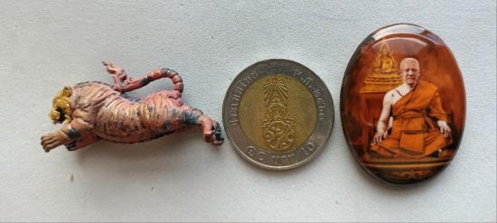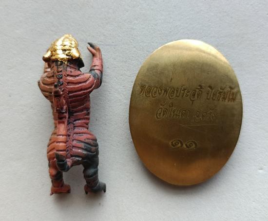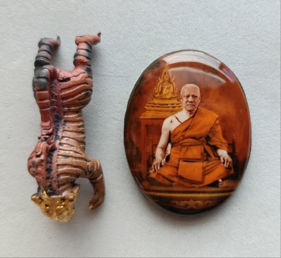 วัดใจเคาะเดียวแดงจ้า ล็อกเก็ตหลวงพ่อประสูติ+รูปหล่อเสือ เนื้อตะปูสังฆวานรปิดทองคำแท้ วัดในเตา เคาะเดียวแดงจ้า