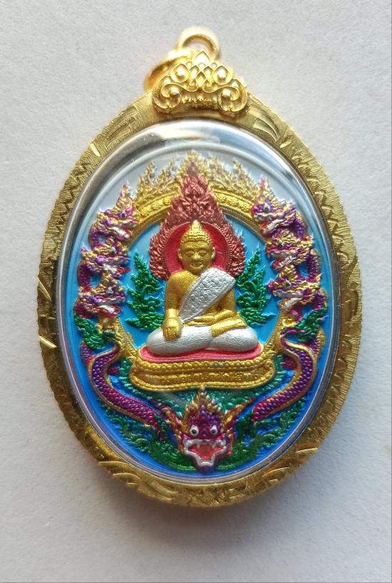 วัดใจเคาะเดียวแดงจ้า เหรียญหลวงพ่อสำเร็จศักดิ์สิทธิ์ เพ้นท์เต็มระบบแบบที่1 หมายเลข555 เลี่ยมกรอบชุบทอง เคาะเดียวแดงจ้า