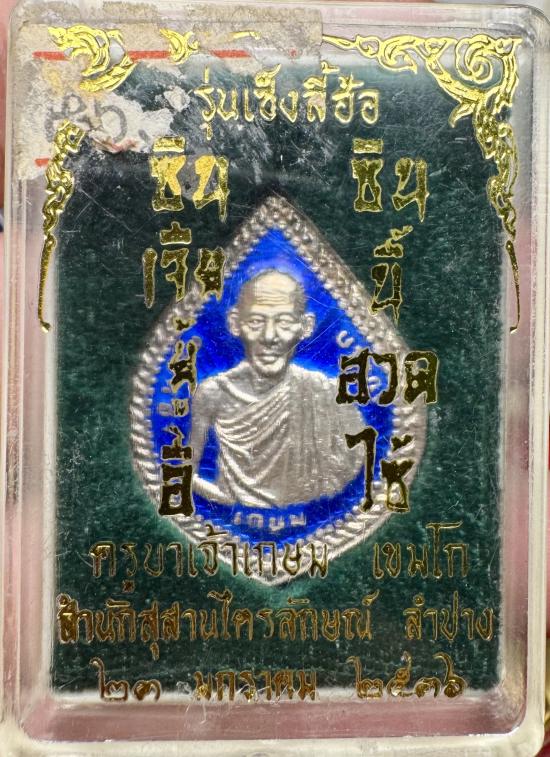 ชื่อพระเครื่อง “วัดใจ”เหรียญหยดน้ำ เซงลี้ฮ้อ เนื้อเงินลงยา หลวงพ่อเกษม ปี2536 พร้อมกล่องเดิม หายากครับ