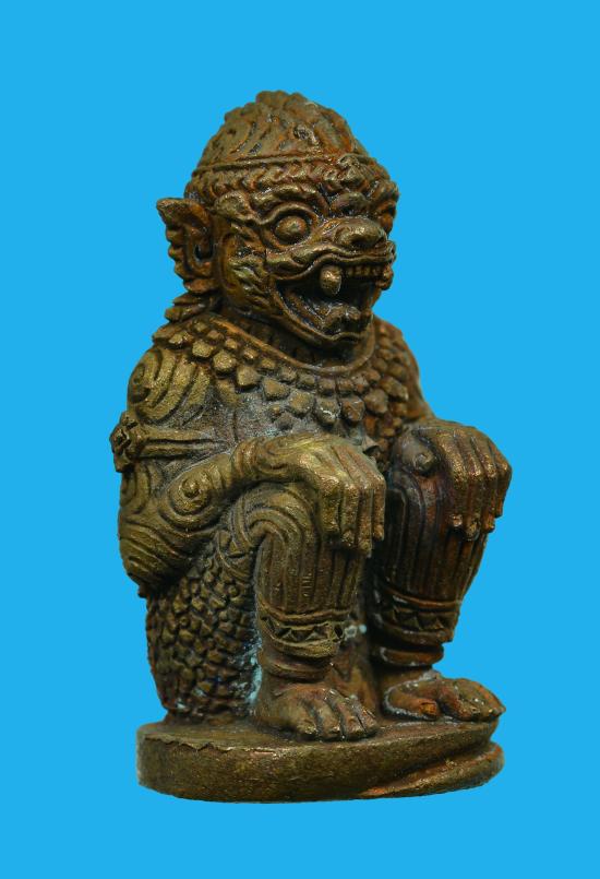เลข 555 หนุมานชนะมารเนื้อทองแดงชนวน อุดผงพรายกุมาร หลวงปู่เขียว วัดห้วยเงาะ ขนาด ๓ ซม.