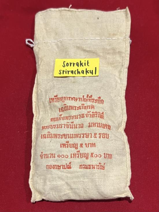 เหรียญ 5 บาทที่ระลึก เฉลิมพระเกียรติสมเด็จพระนางเจ้าสิริกิติ์พระบรมราชินีนาถ พระพันปีหลวงเฉลิมพระชนมพรรษา 5 รอบ ยกถุง 100 เหรียญอยู่ในถุงผ้าเดิมๆจากกรมธนารักษ์ยังไม่เคยเปิดปากถุงสวยงามหายากน่าสะสม