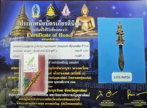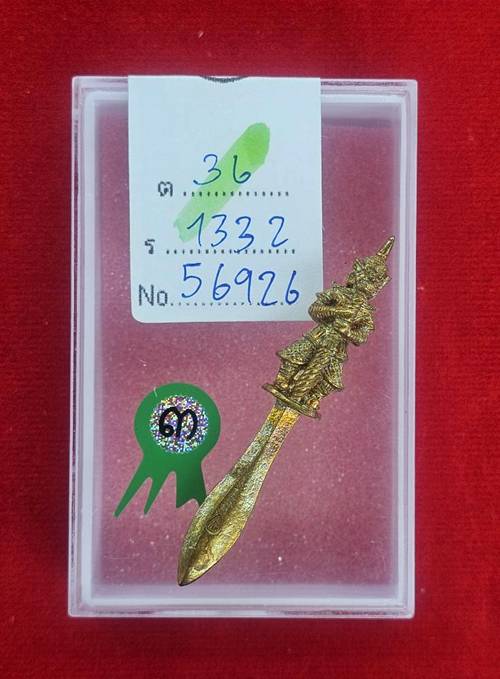พระขรรค์ท้าวเวสสุวรรณ หลวงพ่อสาคร วัดหนองกรับ รุ่นพระไตรปิฎก เนื้อทองเหลือง ปี2544 ติดรางวัลที่3 งานสมาคมพระเครื่องพระบูชาไทย