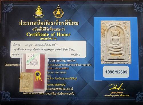 พระสมเด็จแช่น้ำมนต์ หลวงพ่อคูณ วัดบ้านไร่ รุ่นแซยิด6รอบ72ปี เนื้อผง ปี2537 ติดรางวัล2