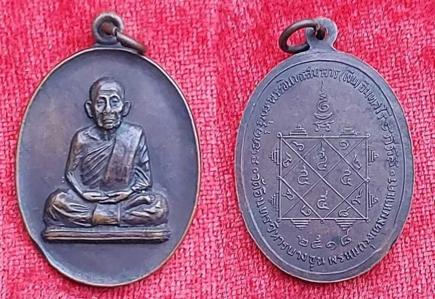เหรียญเต็มองค์หลวงพ่อเงิน วัดอินทรวิหาร บางขุนพรหม กรุงเทพมหานคร ปี2518 เนื้อทองแดง
