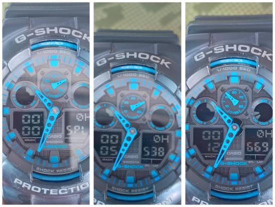 ฿฿฿นาฬิกา G-SHOCK หน้าปัดกว้าง 35 มม.หน้าปัดและขีดบอกเวลาแบบนูนทำให้หน้าปัดดูมีมิติและมีเอกลักษณ์เฉพาะตัว นาฬิกา G-SHOCK มาพร้อมกับ 3 หน้าปัด หน้าปัดตรงกลางเป็นกลไกอะนาล็อก ส่วนหน้าปัดย่อยด้านข้าง 2 หน้าปัดเป็นแบบดิจิตอล นาฬิการุ่นนี้ได้รับการออกแบบและสรรค์สร้างมาเพื่อกันกระแทก กันน้ำ และทนทานต่อแรงแม่เหล็ก ปุ่มขนาดใหญ่มาพร้อมกับพื้นผิวหน้ารูปตารางเพื่อกันลื่นช่วยให้หมุนปุ่มได้อย่างรวดเร็วและไม่มีพลาด นาฬิกาจับเวลา 1/1000 วินาที ตัวระบุอัตราเร่ง เวลาโลก นาฬิกาปลุก 5 ตัว และและอื่นๆ อีกมากมายทำให้นาฬิการุ่นนี้มีคุณสมบัติและทำงานทนทานกันแรงกระแทกได้ดี