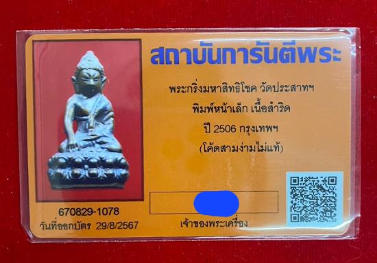 ***พระกริ่งมหาสิทธิโชค วัดประสาทฯ*** พร้อมบัตรรับรอง***