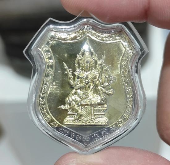 เหรียญท้าวมหาพรหม รุ่นเจ้าสัวพันล้าน(บอย ท่าพระจันทร์) เนื้อตะกั่วผสมชนวนฝังแผ่นทองเสก เลขโค๊ต ๑๐๓๘ พร้อมกล่องเดิม