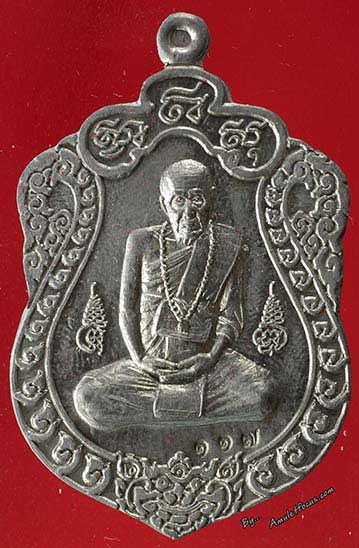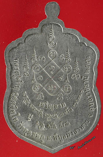 เหรียญเสมา ลป.คำบุ รุ่น เจริญลาภ เนื้อตะกั่วผสมตะกั่วขอมโบราญ หมายเลข ๑๑๗ ออกวัดกุดชมภู ปี 2552