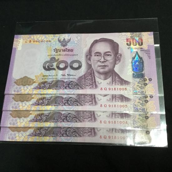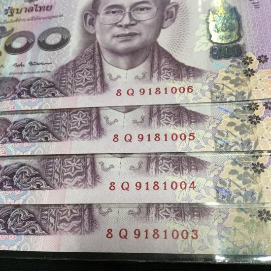 ธนบัตรที่ระลึก 500 บาท สมเด็จพระนางเจ้าพระบรมราชินีนาถในรัชกาลที่ 9 เฉลิมพระชนมพรรษาครบ 7 รอบ **เลขเรียง**รวม 4 ฉบับ ไม่ผ่านใช้ หมายเลข 8Q-9181003-006