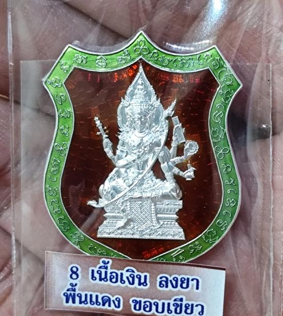 เหรียญท้าวมหาพรหม รุ่นเจ้าสัวพันล้าน(บอย ท่าพระจันทร์) เนื้อเงินลงยาแดงขอบเขียว เลขโค๊ต ๑๕๑๐ พร้อมกล่องเดิม
