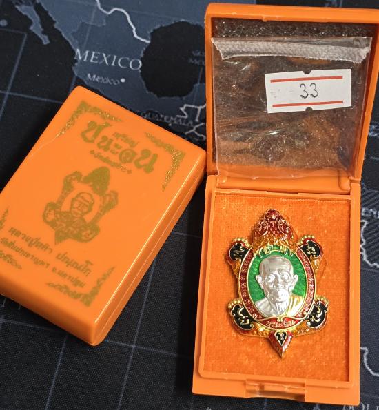 เนื้อทองระฆัง หน้ากากเงิน จีวรปิดทอง ลงยาเขียว เต่าไล่สี ขาดำ สวยมาก