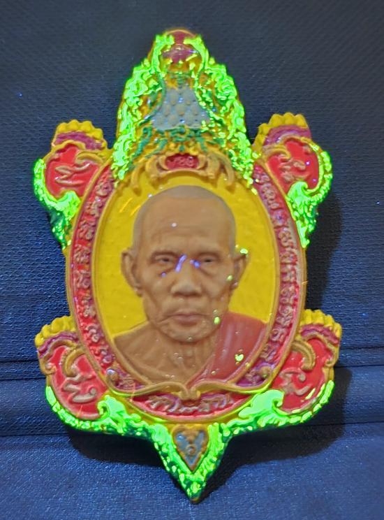 เหรียญพญาเต่าเรือน รุ่น"ชนะจน" หลวงปู่หลิว ปัณณโก วัดสี่แยกเจริญพร นครปฐม เนื้อทองระฆัง เพ้นเสมือนจริง เรืองแสงบางส่วน สวยมาก ตอก"หลิว" หมายเลข ๑๐...พร้อมกล่อง เบาๆเคาะแรกแดง