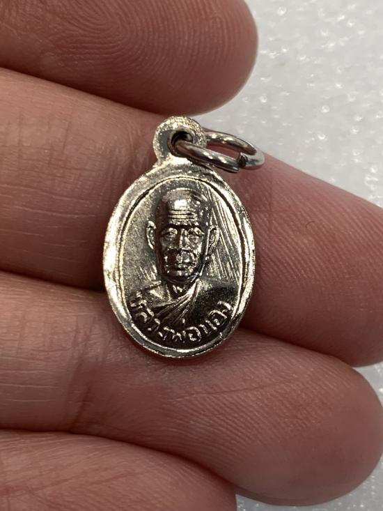 เหรียญเม็ดแตง พระอาจารย์นอง วัดทรายขาว รุ่นแรก ปี 2542 เนื้อทองแดงชุบนิเกิ้ลบล็อกสายฝน