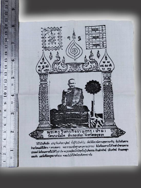 A4909.ผ้ายันต์ พระครูวิหารกิจจานุการ(ปาน) วัดบางนมโค อยุธยา เคาะเดียวเเดง