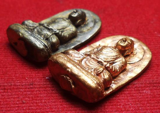 คันธราชรุ่นแรก พิมพ์เล็ก เนื้อทองระฆัง(ทองเหลืองแก่เงิน) โค๊ตระฆังหลวงพ่อลออ ฐานวโร วัดหนองหลวง ท่าตะโก นครสวรรค์ + คันธราชรุ่นแรก พิมพ์เล็ก หลวงพ่อลออ วัดหนองหลวง เนื้อพิงค์โกลสีชมพู่(ทองแดงแก่เงิน) โค๊ตระฆัง หายากสร้างน้อย