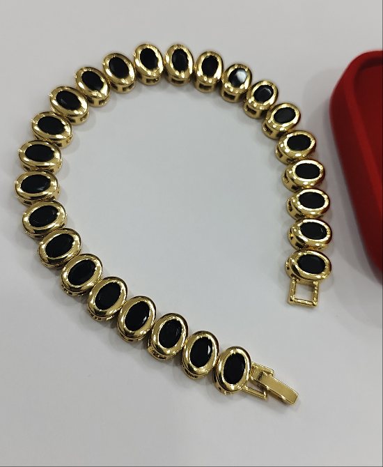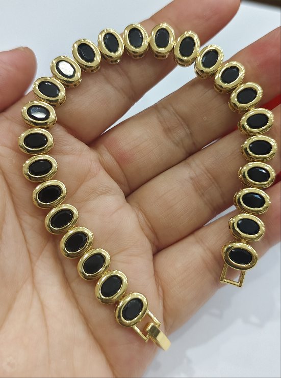 เทขาดทุน+ กำไลข้อมือนิลดำยาว 7.นิ้ว งานจิวเวลลี่ชุบทองแท้
