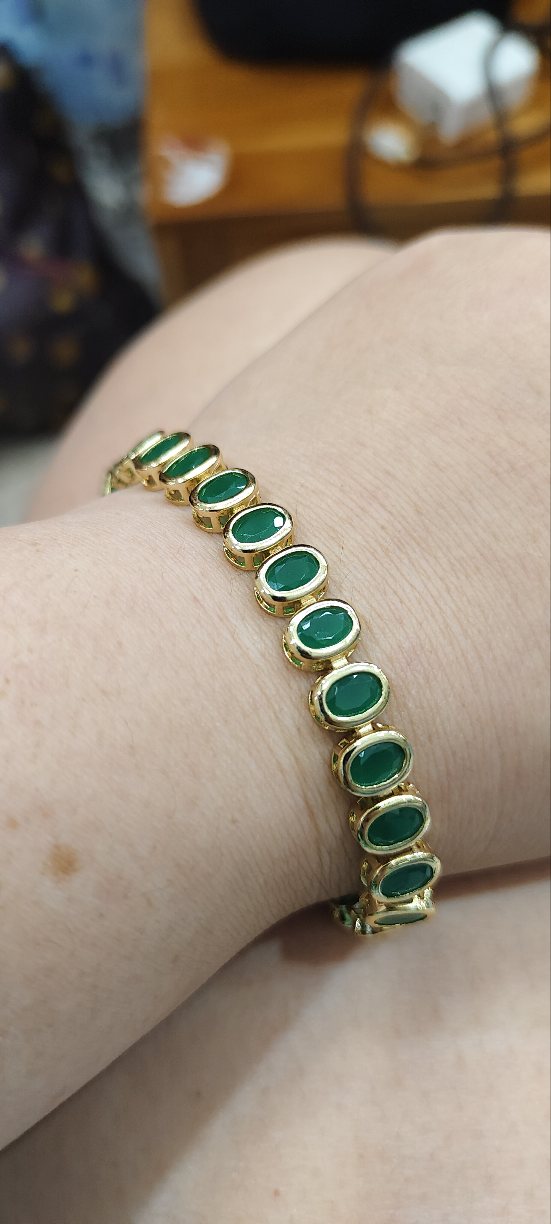 เทขาดทุน+ กำไลข้อมือมรกต ยาว 7.นิ้ว งานจิวเวลลี่ชุบทองแท้