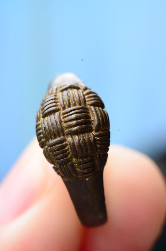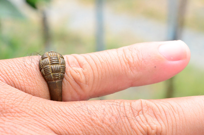 แหวนพิรอด สานลายตะกร้อ เนื้อทองเหลือง หลวงพ่อเงินเด่น วัดขุนทิพย์(ศิษย์หลวงพ่อเชื้อ) สืบสานตำนานสายวิชา หลวงปู่โปร่ง(ศิษย์หลวงพ่อกลั่น วัดพระญาติฯ) วัดขุนทิพย์ อ.อุทัย จ.อยุธยา เก่าครับ