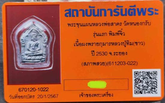 ขุนแผนพรายกุมาร พิมพ์จิ๋ว เนื้อขาว หลังยันต์ นฤาชัย รุ่นแรก ปี 2530 หลวงพ่อสาคร วัดหนองกรับ พร้อมบัตรรับรองสภาพสวย
