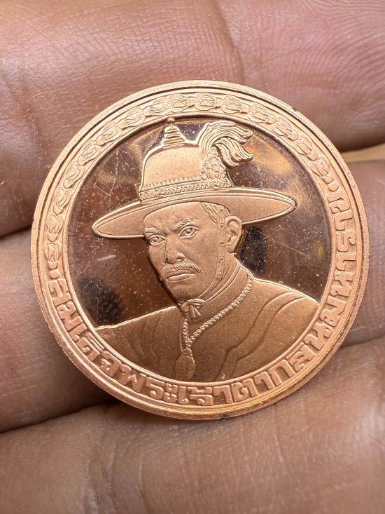 เหรียญพระเจ้าตากสิน รุ่นบูรณะพระราชวังเดิม ปีพ.ศ.2538 เนื้อทองแดงขัดเงา