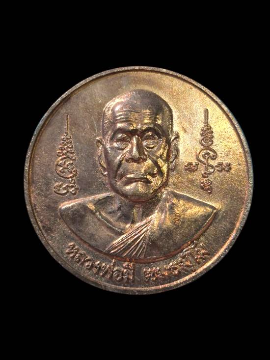 เหรียญน้ำมนต์ใหญ่(รุ่นแรก) รุ่นวิชิตมาร หลวงพ่อมี วัดมารวิชัย อยุธยา สร้างปี ๒๕๔๐ เนื้อทองแดง พร้อมกล่องเดิมๆ เคาะเดียว
