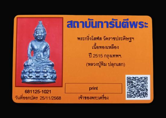 พระกริ่งโสฬส หลัง มปร. ปีพ.ศ.๒๕๑๕ เนื้อทองเหลืองรมดำ พร้อมบัตรรับรอง ครับ