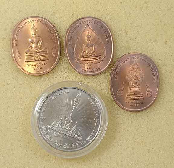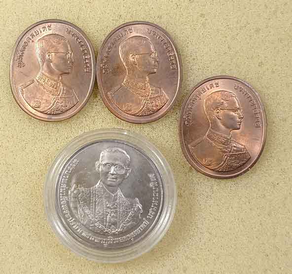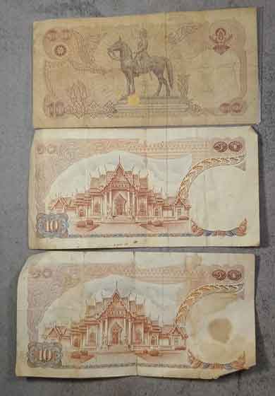เหรียญร.9 4 เหรียญ + ธนบัตร 10 บาท 3 ฉบับ