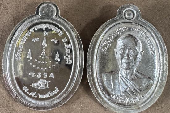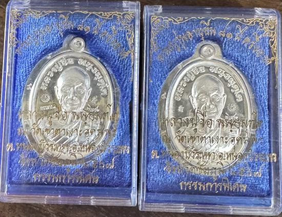 เหรียญหลวงปู่จื่อ พนฺธมุตฺโต วัดเขาตาเงาะ จ. ชัยภูมิ รุ่นอายุยืน81 เนื้อเงินกรรมการพิเศษไม่ตัดปีกหลักยันต์ และหชังแบบ9 รอบ หลังยันต์สร้าง50เหรียญ หลังแบบสร้าง30เหรียญ หมายเลฃ28 1คู่มีกล่องครับ