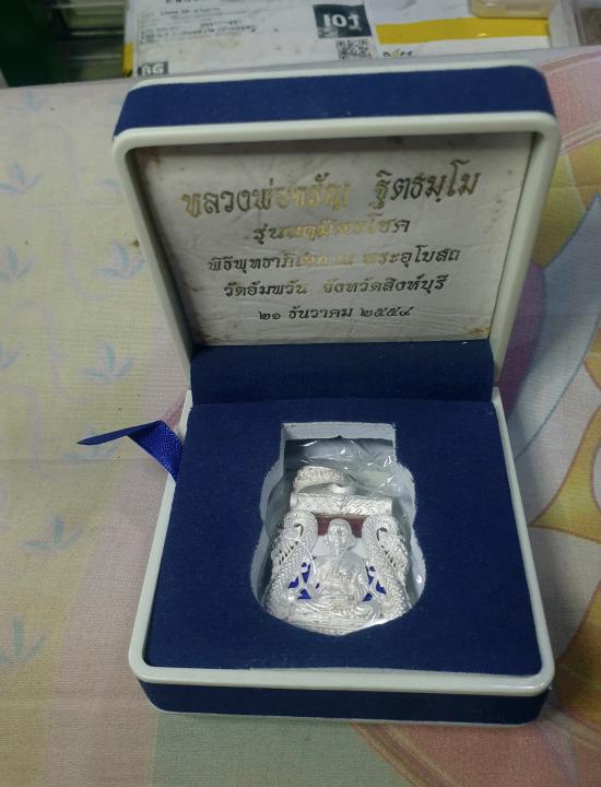 เหรียญเสมาฉลุ ล.พ.จรัญวัดอัมพวัน"เนื้อเงินลงยาสีธงชาติ" เลข#๖๙๗ กล่องเดิม