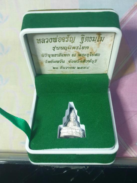 พระชัยวัฒน์นฤมิตรโชค "เนื้อเงิน" หลวงพ่อจรัญ วัดอัมพวัน จังหวัดสิงห์บุรี พระสวยหมายเลข#๑๔๗๔ พร้อมกล่องเดิม