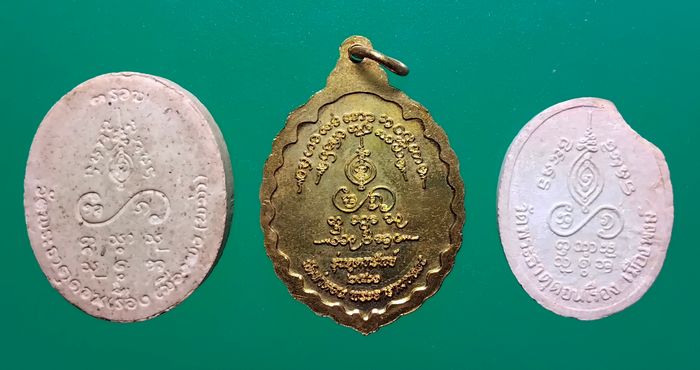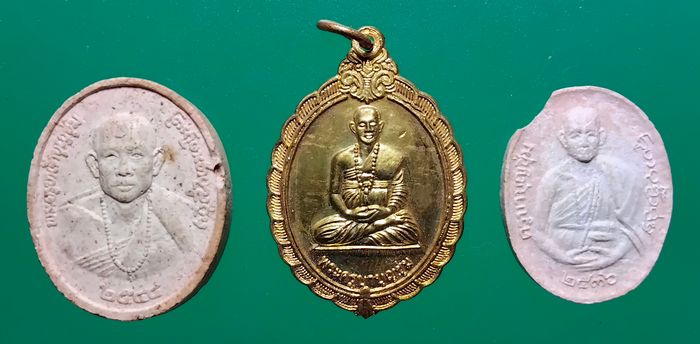 140 .- วัดใจ.@@ เหมา 3 รายการ > " พระผงรูปเหมือน 2 องค์ + เหรียญ 1 " พระครูบาเจ้าบุญชุ่ม วัดพระธาตุดอนเรือง ค่ะ @@