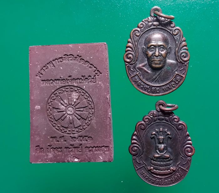 140 .- วัดใจ.@@ เหมา 3 รายการ > " พระผงมหามงคล 1 เหรียญ + เหรียญ 2 " หลวงพ่อเจ็ดกษัตริย์ - หลวงปู่สอ วัดป่าบ้านหนองแสง จ.ยโสธร ค่ะ @@
