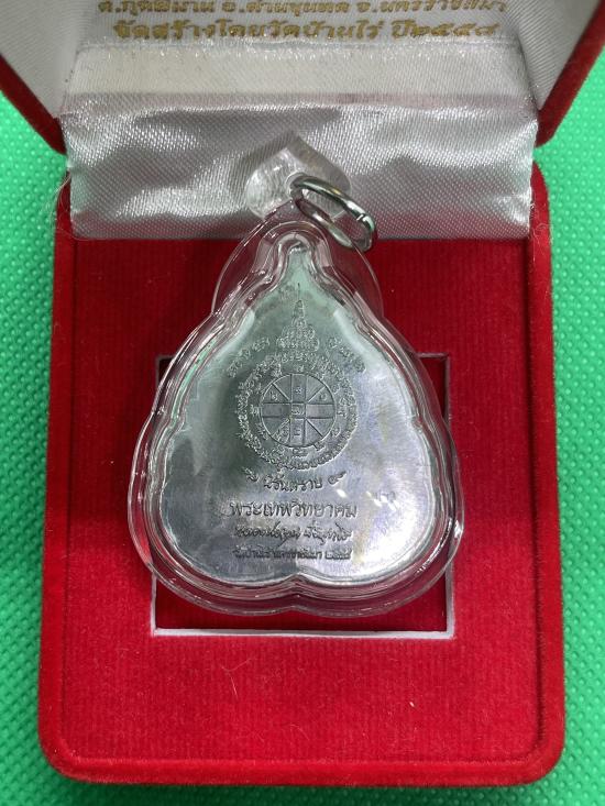 เหรียญพิมพ์ใบโพธิ์ รุ่นสุขในหัวใจ2 ปี2558 เนื้อตะกั่ว ฝังเพชร (มาสเตอร์พีช) 1/1 มีกล่อง