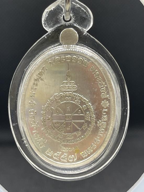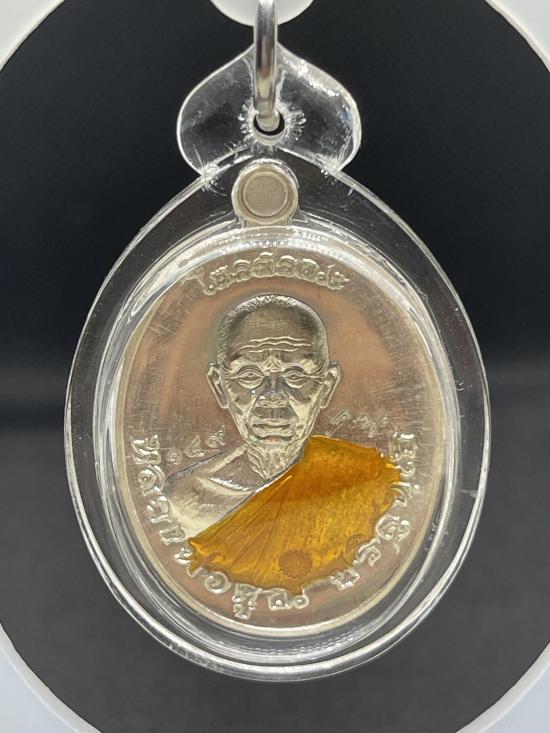 เหรียญหลวงพ่อคูณ ปริสุทโธ วัดบ้านไร่ รุ่นไตรสรณะ จัดสร้างปี ๒๕๕๗ เหรียญจากชุดกรรมการอุปถัมภ์ เนื้อเงิน ลงยาจีวรเหลือง หมายเลข ๑๔๙